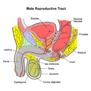 The prostate is part of the man’s reproductive system. The seminal vesicles lie above the prostate, behind the bladder and in front of the back passage. They supply and store a thick clear fluid that mixes with sperm to form semen, called the ejaculate. This fluid empties from the seminal vesicles by a tube into the part of the urethra that is inside the prostate.